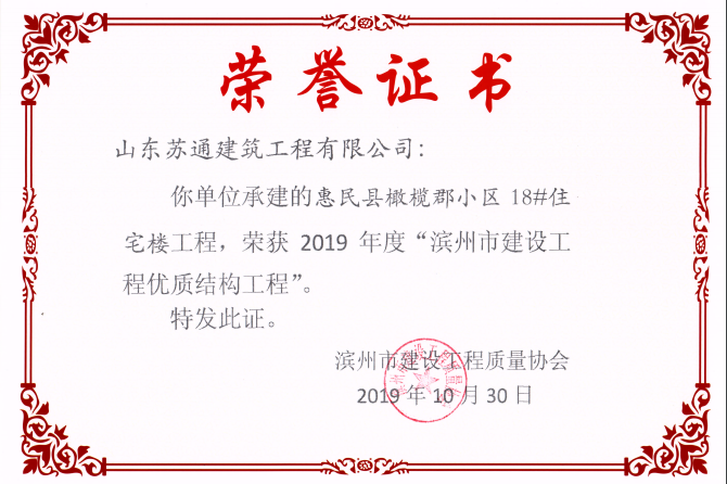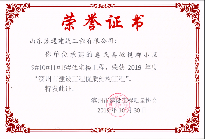 山東蘇通建筑工程有限公司,創(chuàng)建于2009年8月。目前擁有房屋建筑工程施工總承包壹級、市政公用工程施工總承包叁級、水利水電工程施工總承包叁級資質(zhì),同時還具有建筑裝修裝飾工程專業(yè)承包貳級、消防設(shè)施工程專業(yè)承包貳級、鋼結(jié)構(gòu)工程專業(yè)承包叁級、建筑機電安裝工程專業(yè)承包叁級等專業(yè)承包資質(zhì)。 公司總部坐落于山東省濱州市濱城區(qū)黃河十二路877號,現(xiàn)有辦公面積約2000平方米,機構(gòu)設(shè)黨支部工會辦公室、總經(jīng)理辦公室、綜合辦公室、工程管理部、經(jīng)營預算部、資產(chǎn)財務(wù)部、材料設(shè)備部、運行管理部、法律事務(wù)部等多個職能部門。公司管理體系已經(jīng)通過了GB/T 19001及GB/T 50430質(zhì)量管理體系、GB/T 24001環(huán)境管理體系(EMS)、GB/T 28001職業(yè)健康安全管理體系(OHSMS)等體系的認證。 公司承建完工了濱州市建大教師之家、建大清怡苑、香格里拉水岸綠城住宅小區(qū)、雙泰建大城、曲阜崇德公館住宅小區(qū)、北海新區(qū)御景藍灣住宅小區(qū)、沾化德榮國際華城住宅小區(qū)、惠民橄欖郡住宅小區(qū)等工程項目,目前在建工程項目有:濱州市頤高國際電子商務(wù)產(chǎn)業(yè)園住宅小區(qū)項目、濱州市東盛國際項目、高新區(qū)建大中央華府住宅小區(qū)項目、濱州市融匯新里程住宅小區(qū)項目、濱州市建大秦皇壹號住宅小區(qū)項目、濱州市森林花...